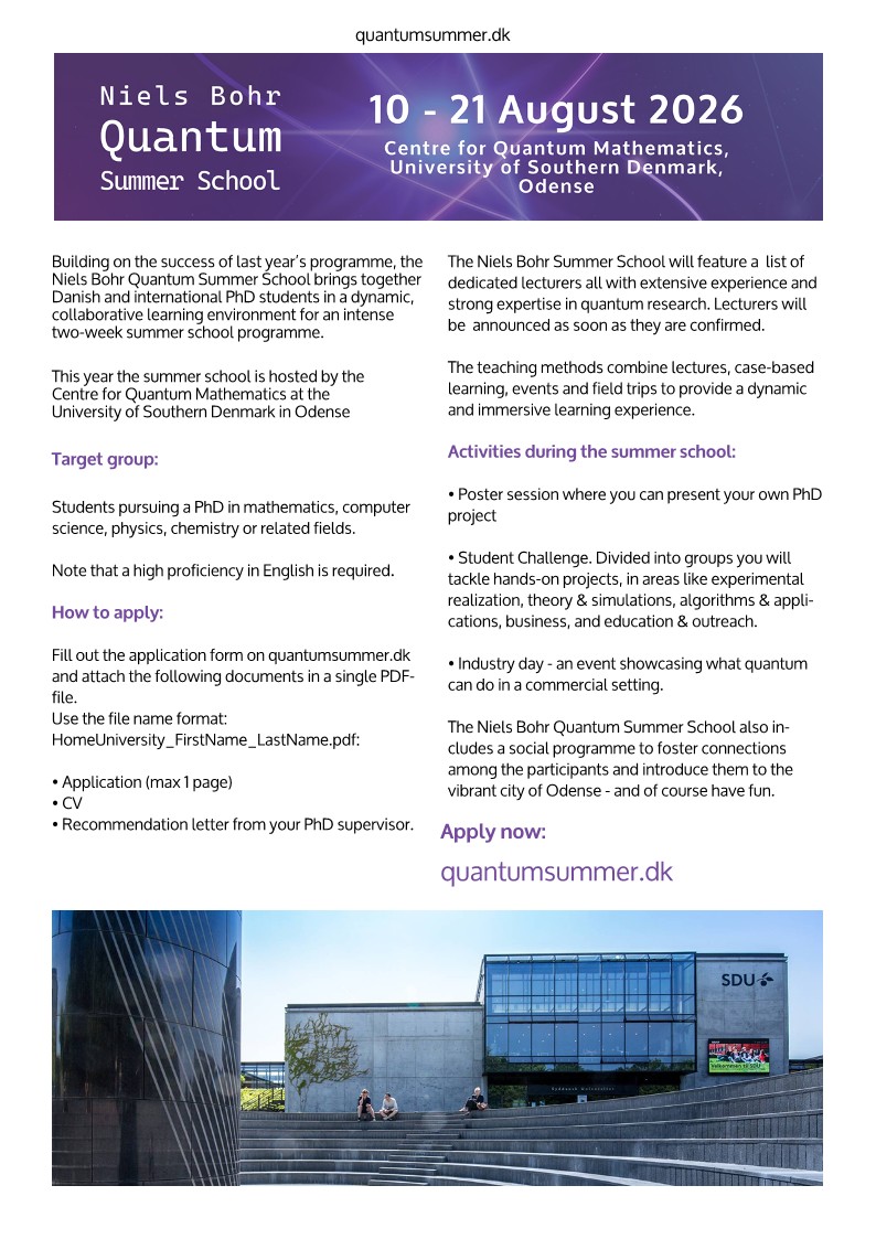 - 명칭: Niels Bohr Quantum Summer School 2026