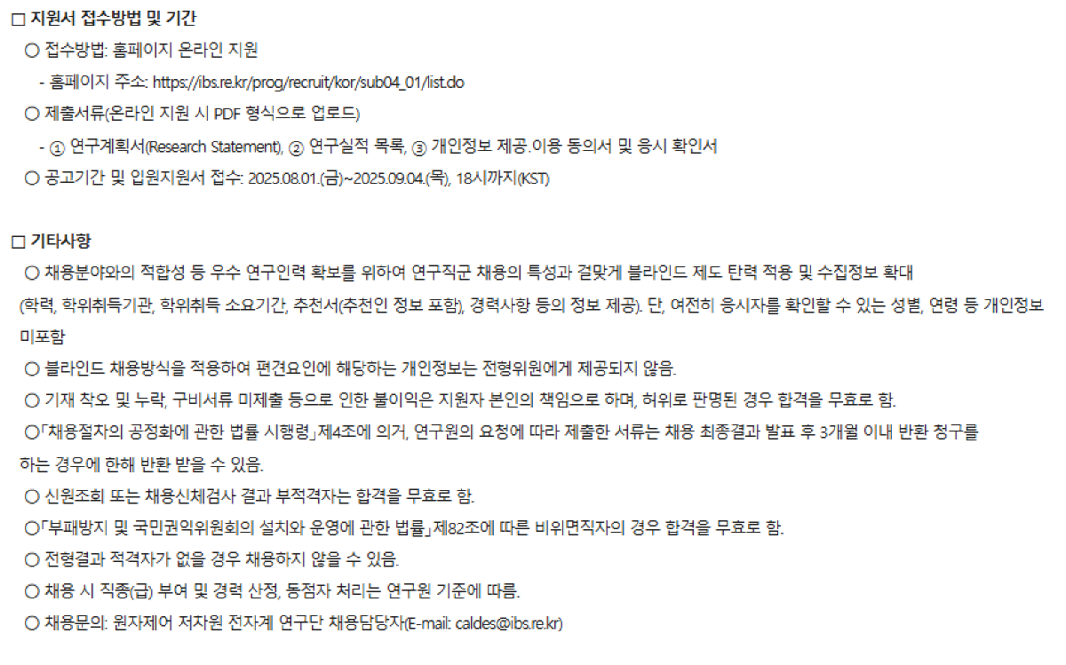 2025-6회 기초과학연구원 원자제어 저차원 전자계 연구단 연구직 채용 공고