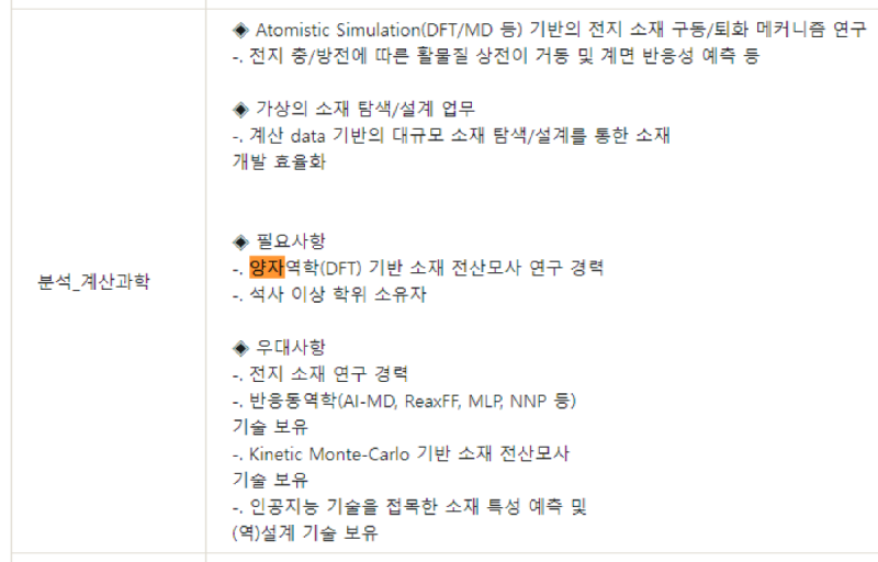 - 채용부문 : 분석 - 계산과학