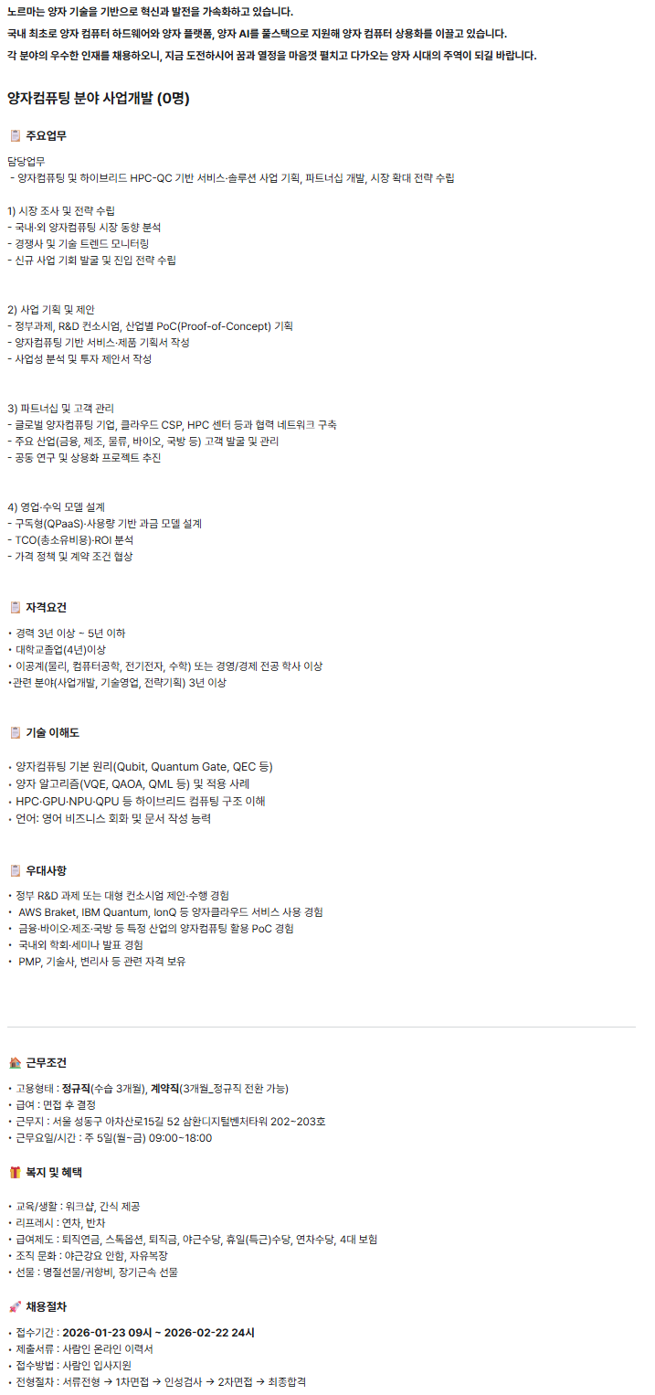 [노르마] 양자컴퓨팅 분야 사업개발 인력 채용