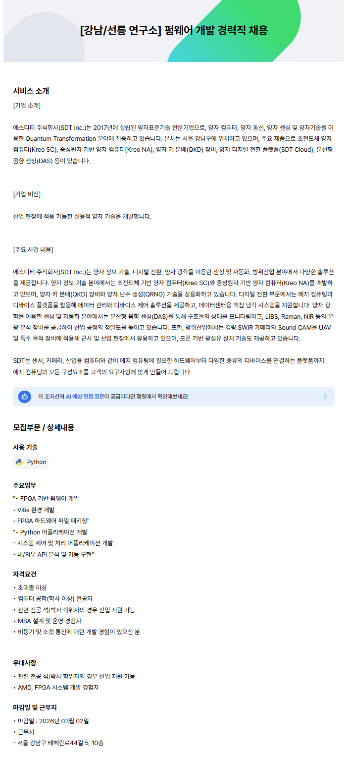 [에스디티(주) 강남/선릉 연구소] 펌웨어 개발 경력직 채용