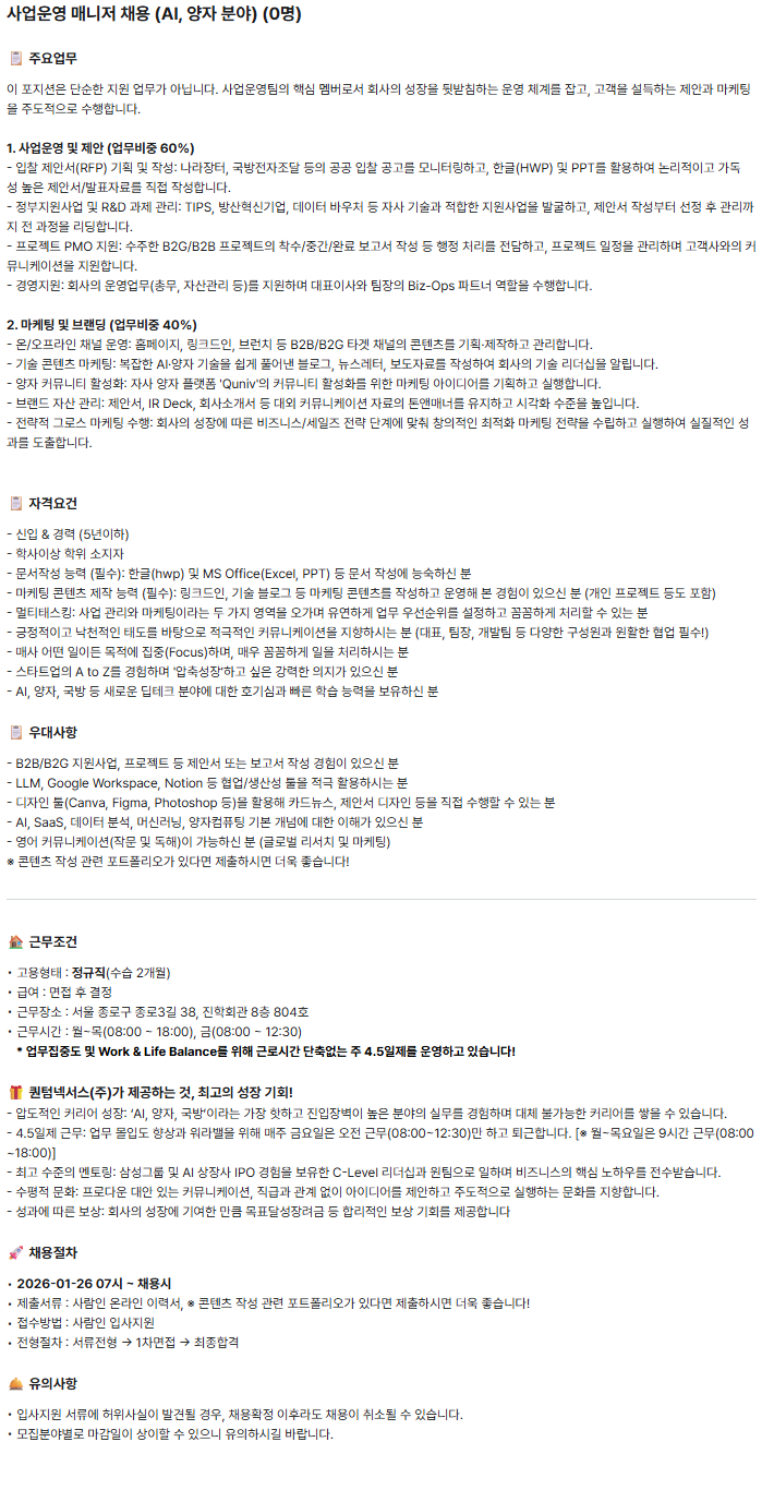 퀀텀넥서스(주) 사업운영 매니저 채용(AI, 양자 분야)