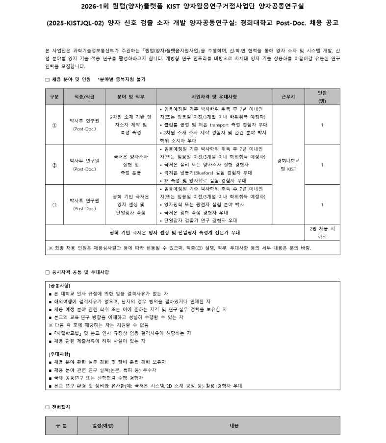 경희대학교 하이브리드양자시스템연구실 Post-Doc. 모집