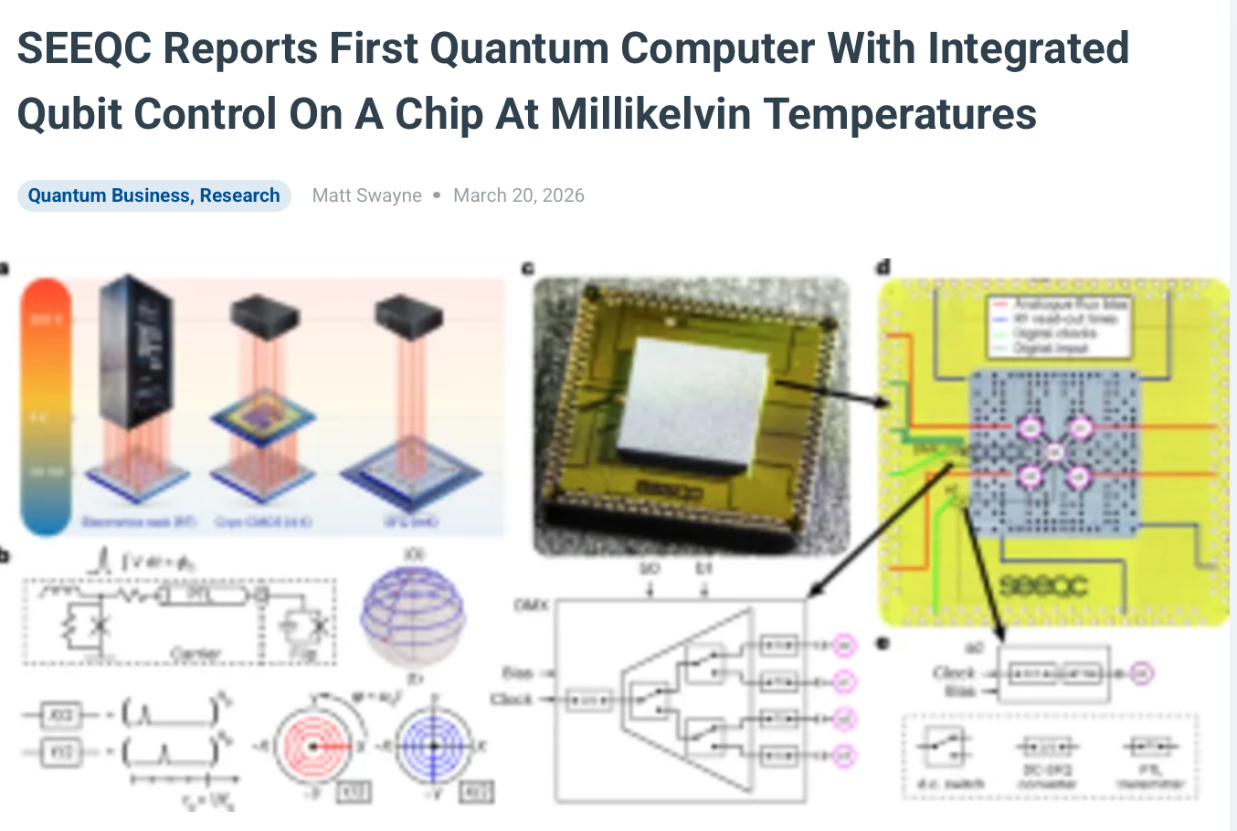 SEEQC는 밀리켈빈 극저온 환경에서 큐비트와 디지털 제어 회로를 하나의 칩 구조로 통합한 양자컴퓨터를 최초로 구현했습니다.