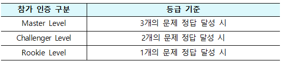 ⦁ 제출된 결과물의 평가 점수를 종합하여 등급 기준에 따라 참가 인증서 지급 예정