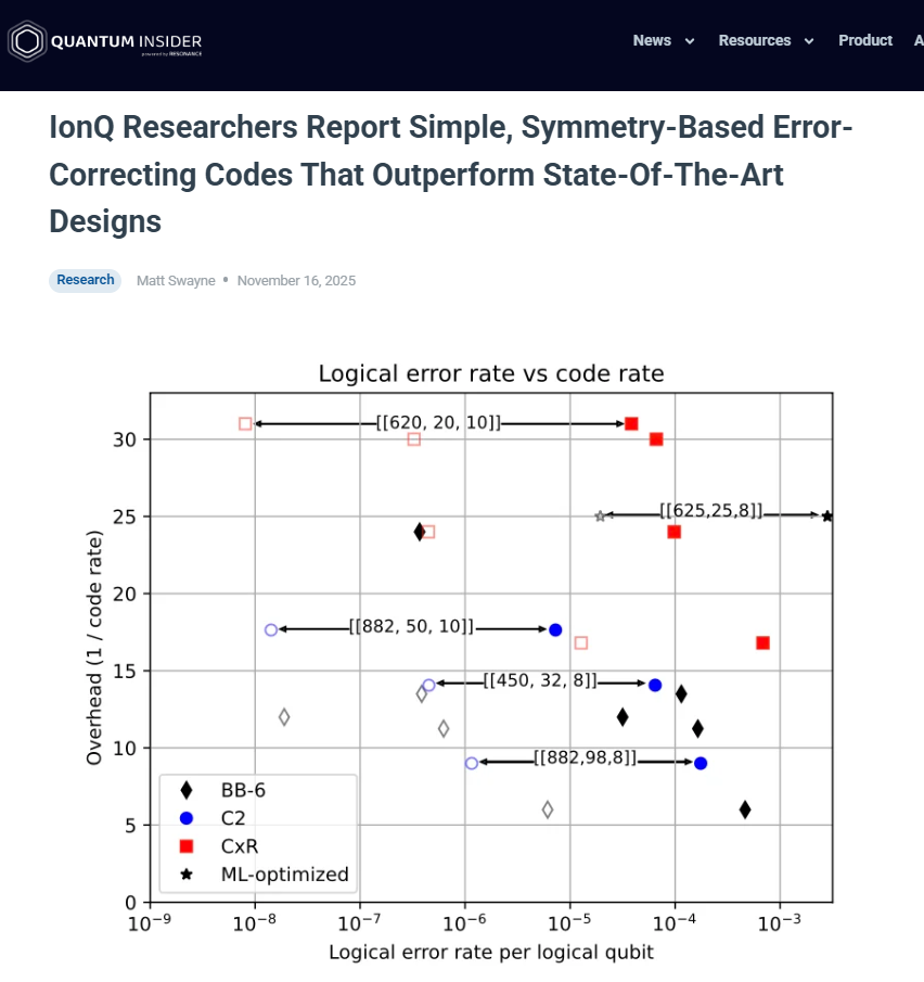 IonQ 연구팀은 단순 대칭 기반 Cyclic Hypergraph Product 코드를 개발하여 기존 ML 최적화 HGP 코드보다 논리 오류율을 수~수천 배 낮췄습니다.