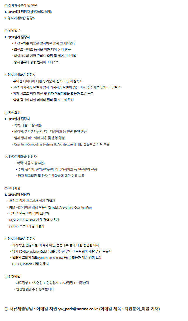 노르마 양자 QPU 설계/기계학습 연구원 모집_병역특례