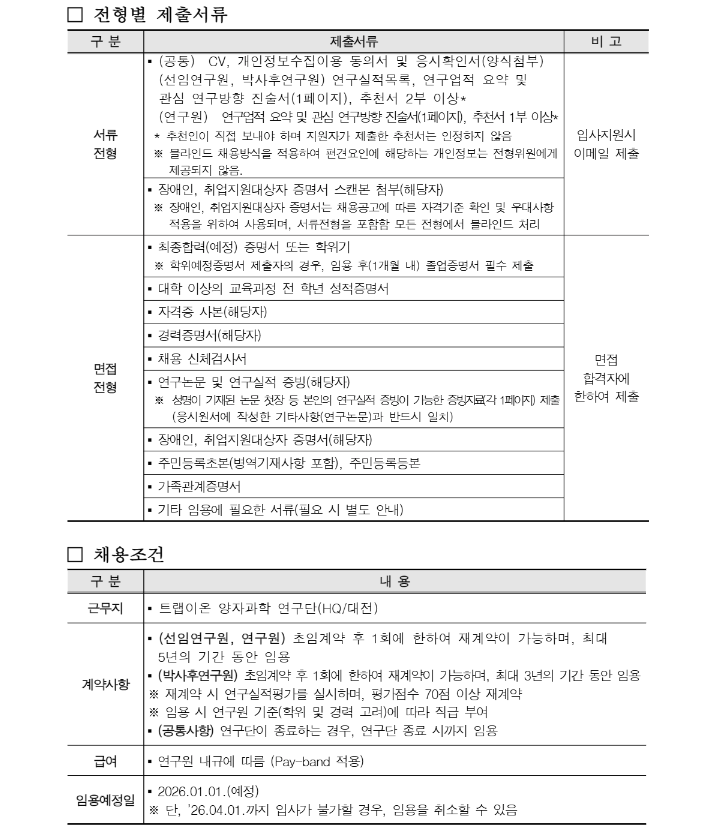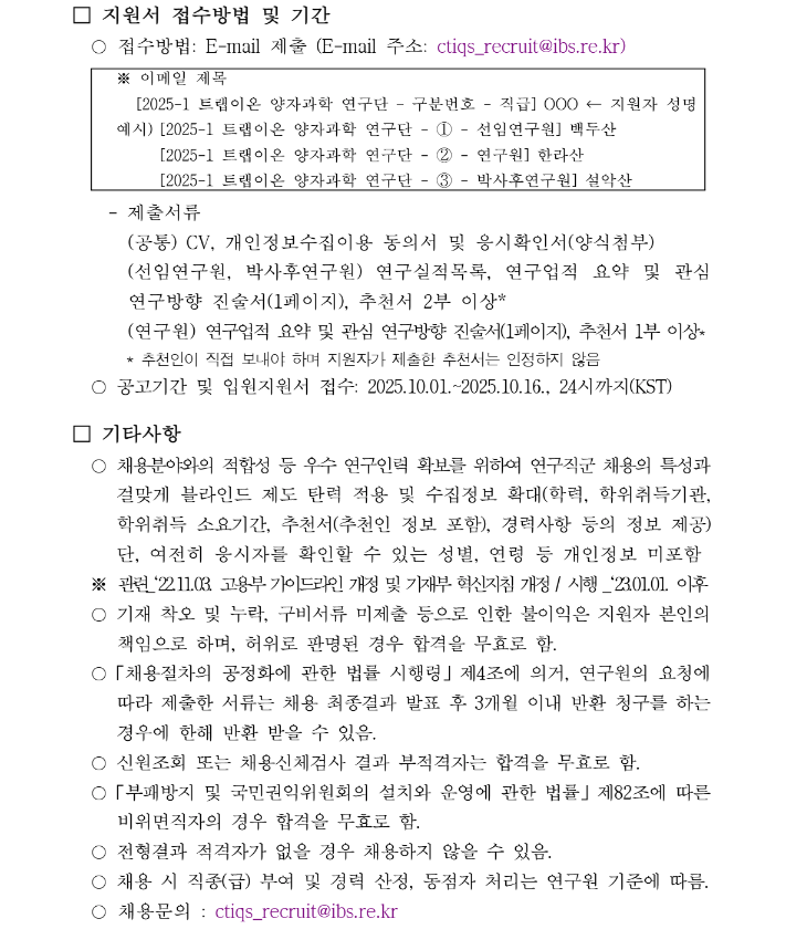 기초과학연구원 제2025-1회 트랩이온양자과학연구단 연구직군 및 Post-Doc. 채용