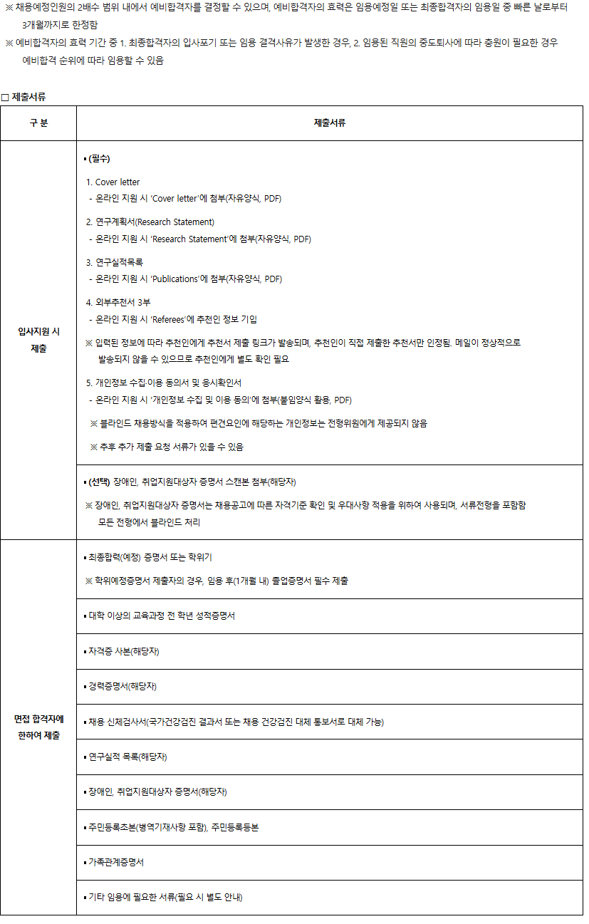 한국과학기술연구원 계약직 연구원/직원 모집
