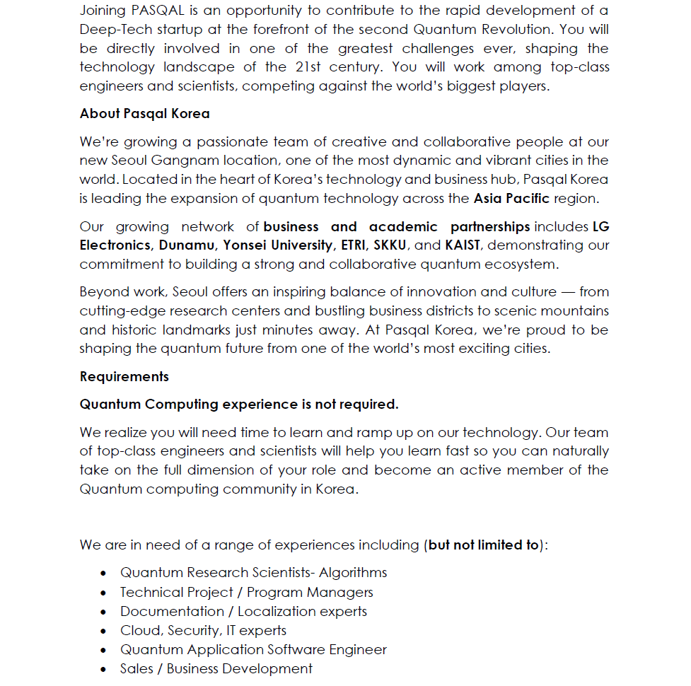 [Pasqal Korea 채용 안내]