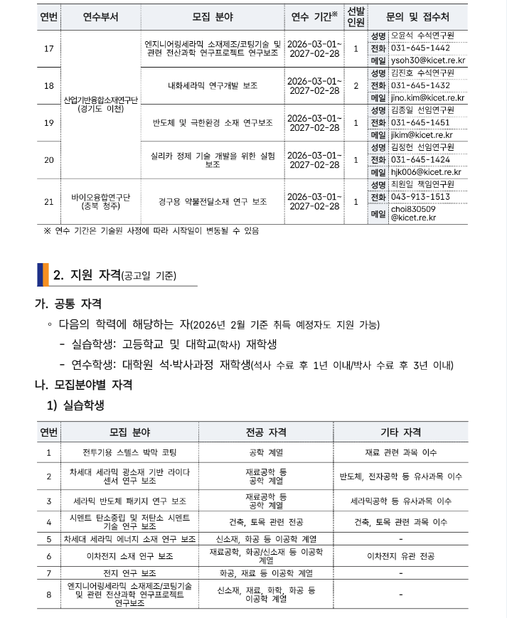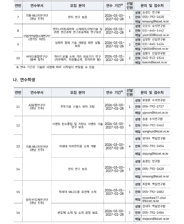 한국세라믹기술원 연수연구원 모집