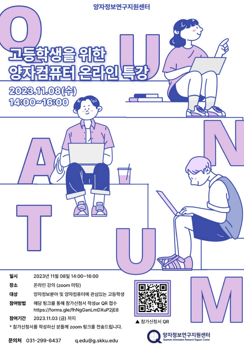 양자정보과학에 관심있는 고등학생 누구에게나 열려있으니, 많은 관심과 참여 바랍니다.