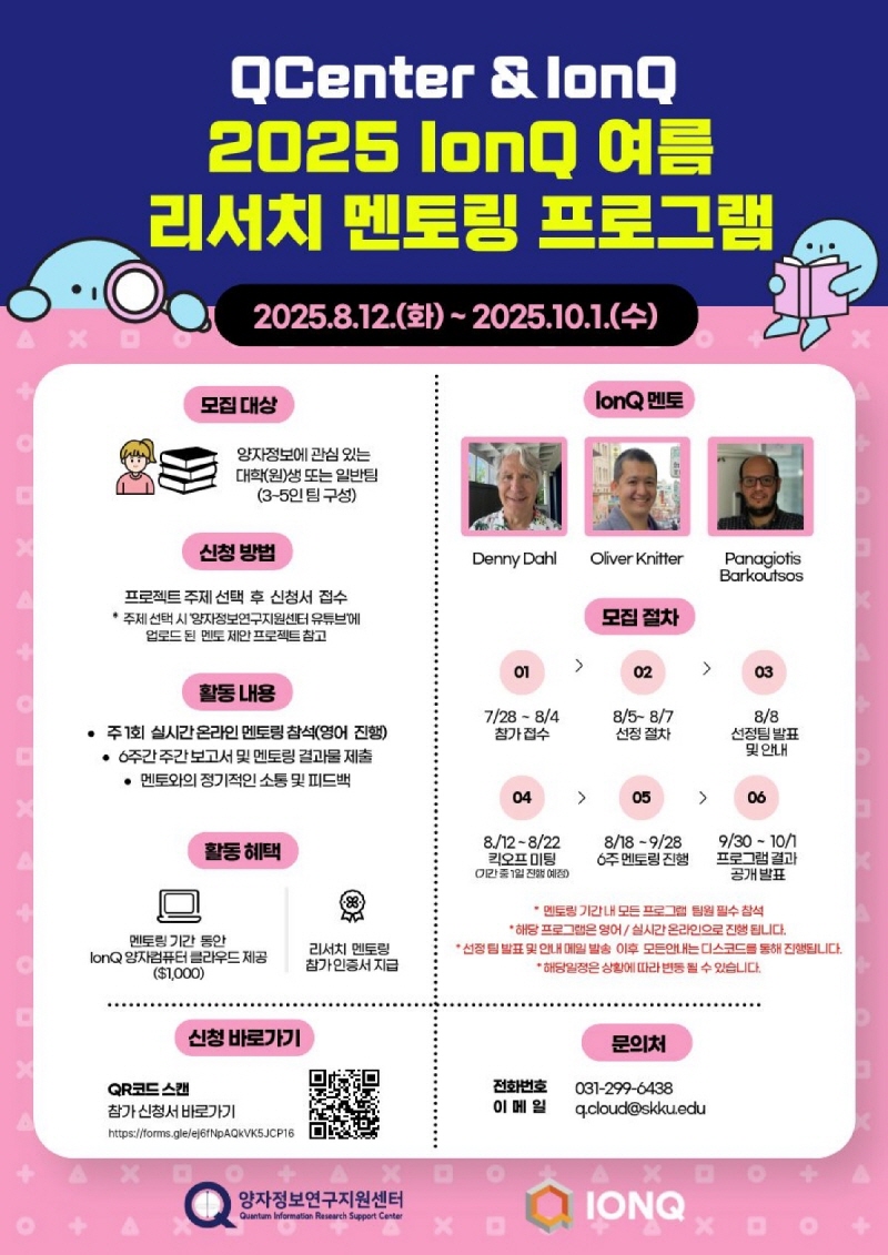 [멘토링] 2025 IonQ 여름 리서치 멘토링 프로그램 참가자 모집(~25.8.4까지)