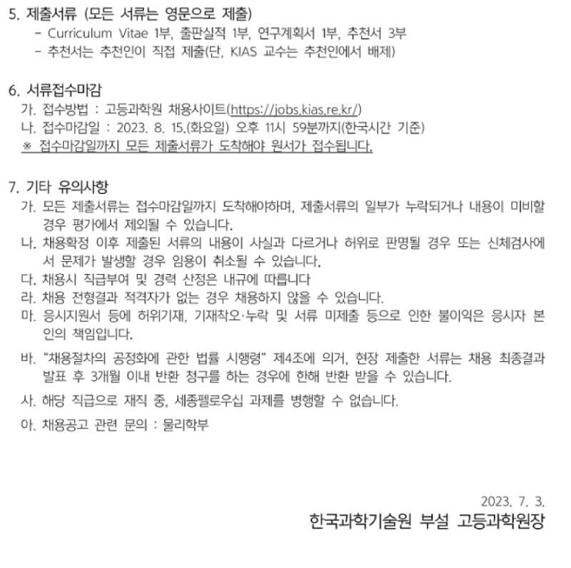 KIST 2023년 7월 연수직(Post-Doc./인턴연구원) 공개채용