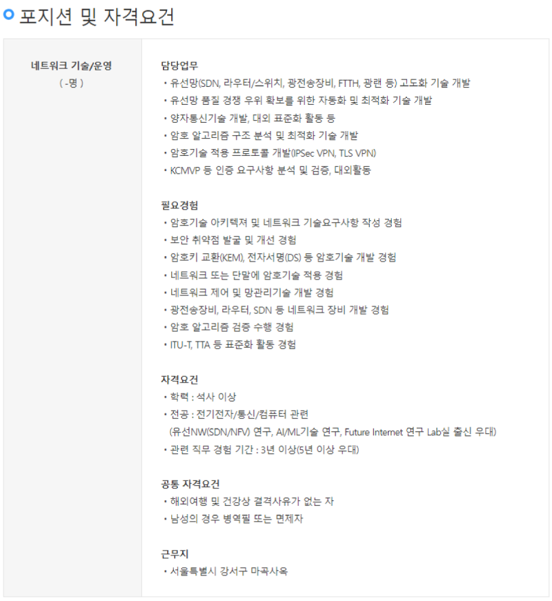 LG유플러스 -NW부문 유선망 고도화 기술 개발 직무 경력채용