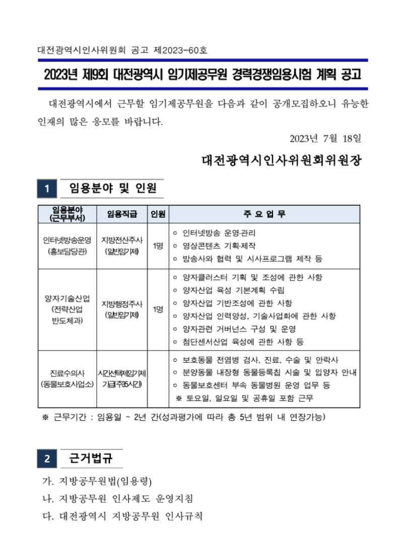 관련 홈페이지 : 대전광역시 임기제공무원 채용
