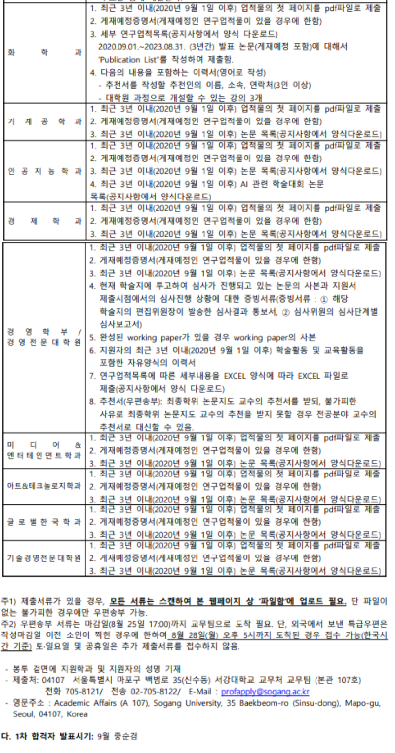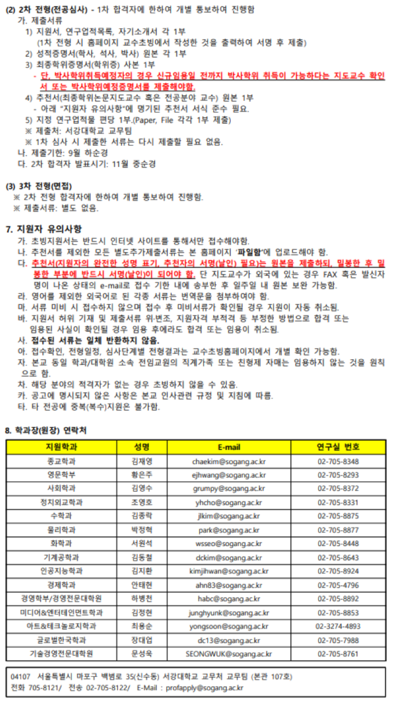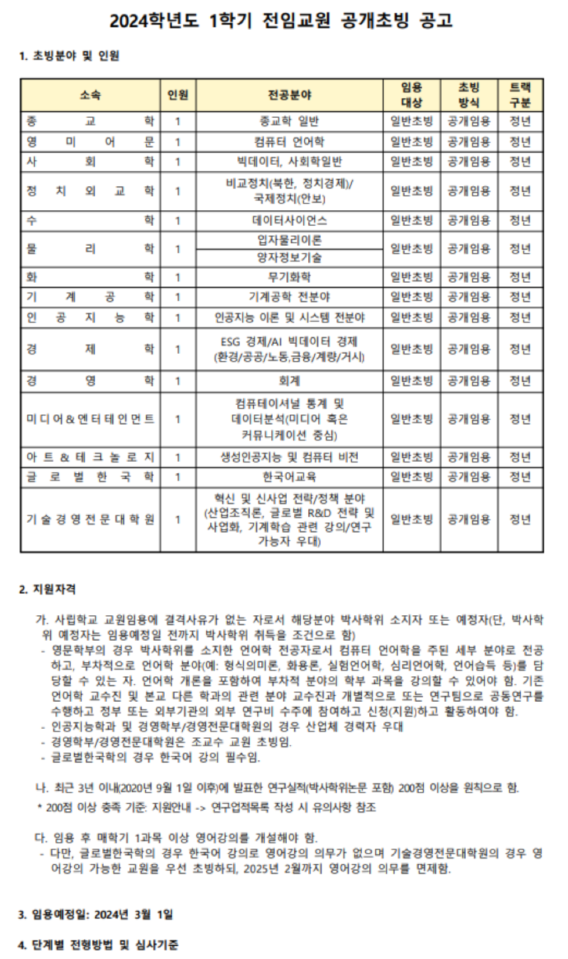 서강대학교 전임교원 초빙