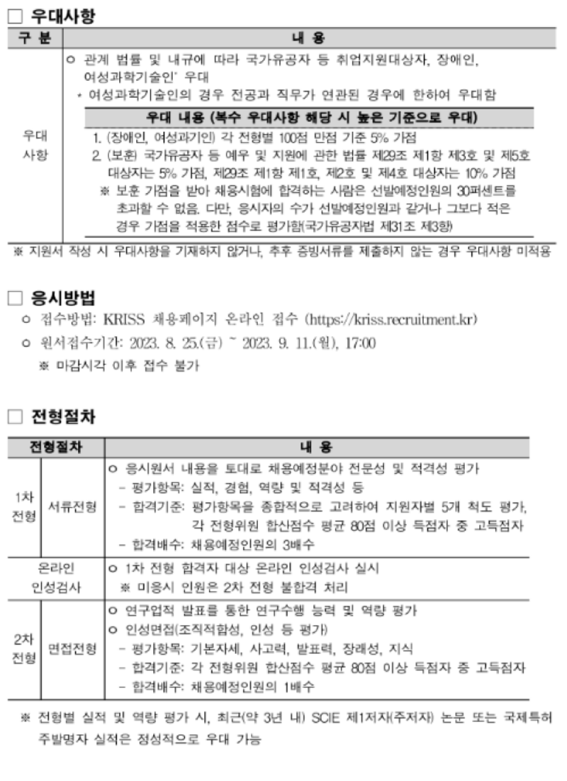 한국표준과학연구원 2023년 3차 정규직 공개채용