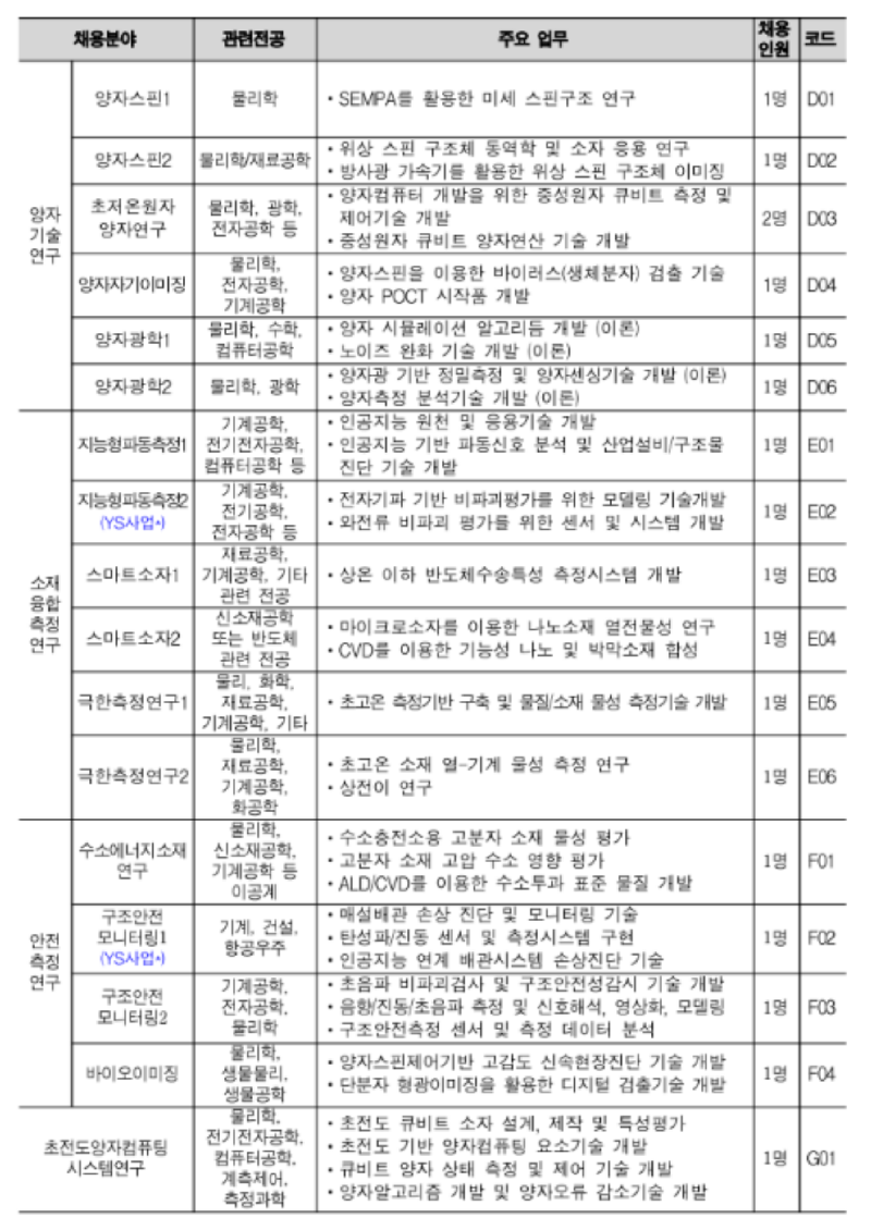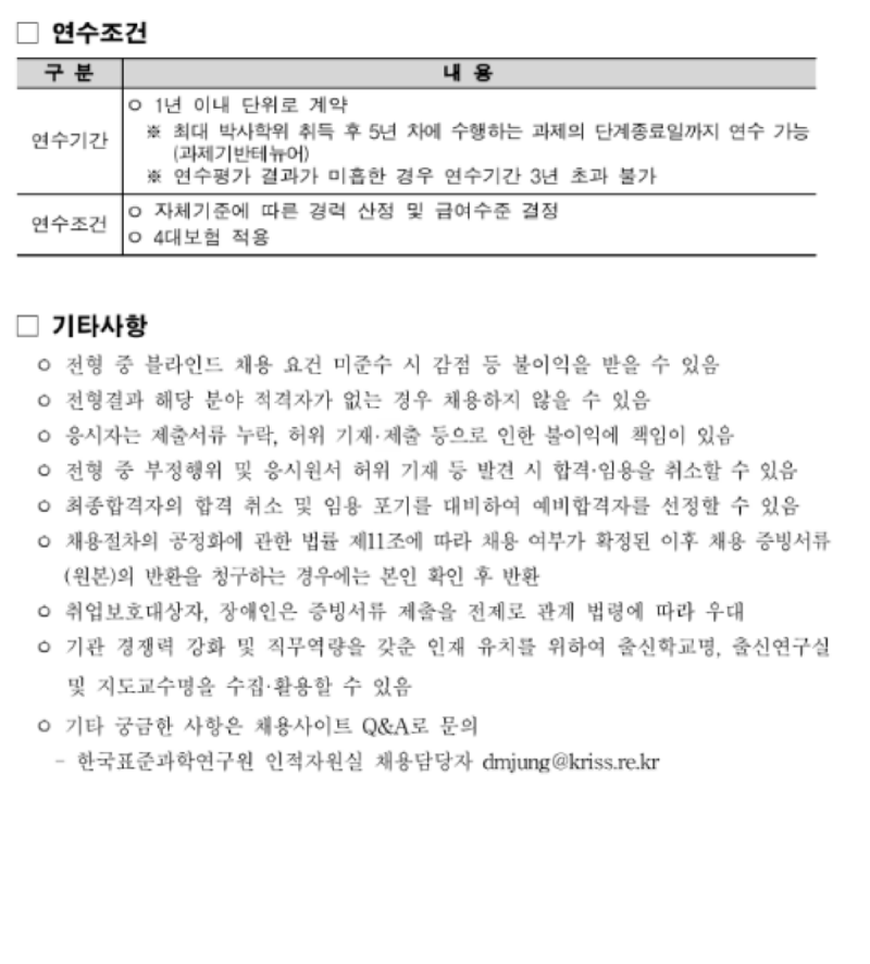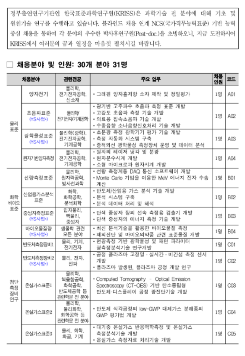 한국표준과학연구원 2023년 4차 Post-Doc. 공개채용