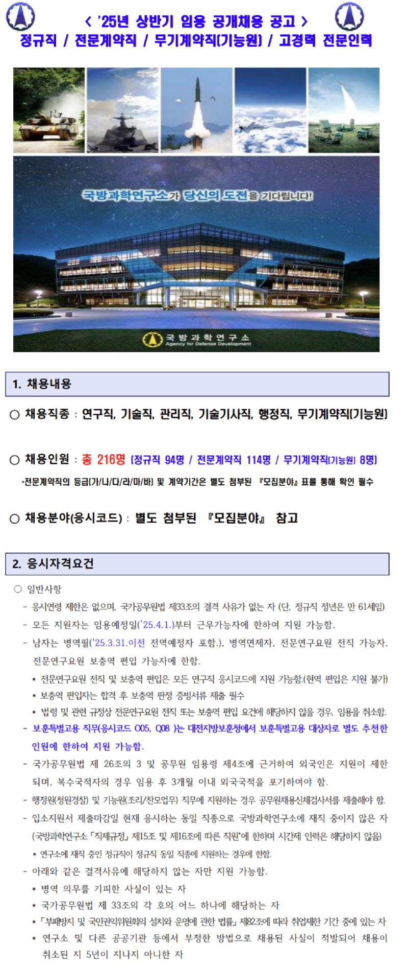 국방과학연구소(ADD) '25년 상반기 임용 공개채용