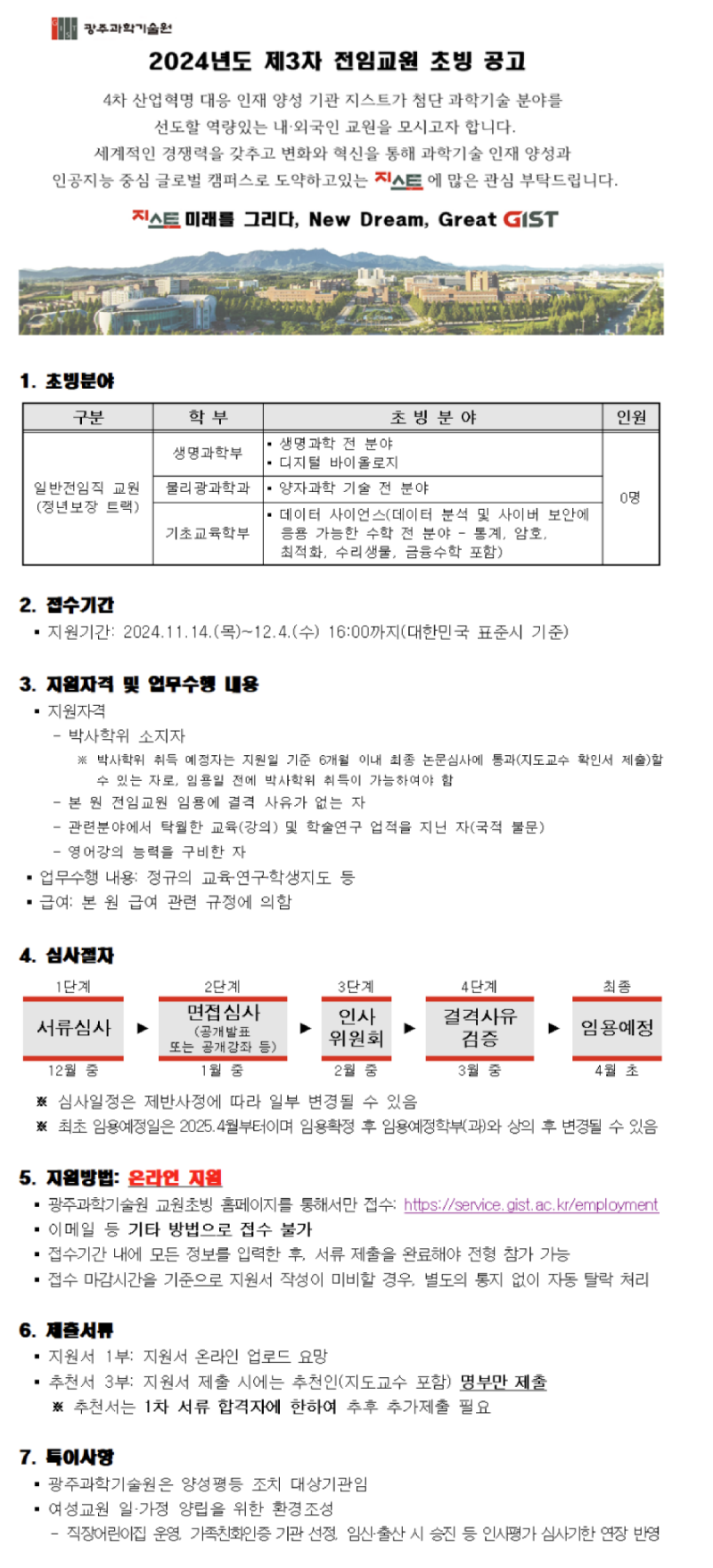 GIST 2024년도 제3차 전임교원 초빙