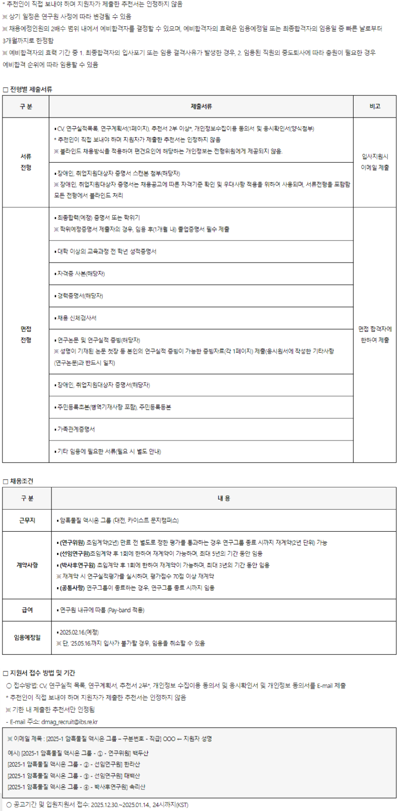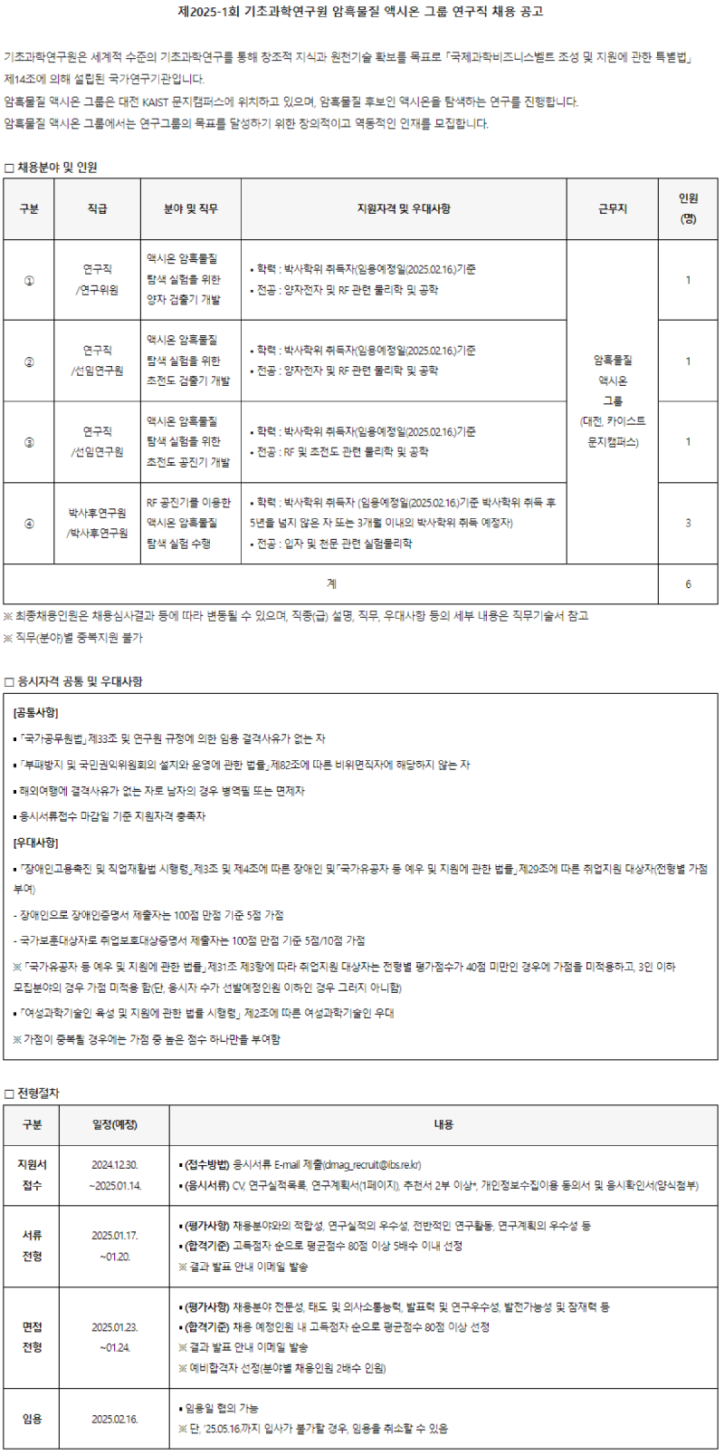 제2025-1회 기초과학연구원 암흑물질 액시온 그룹 연구직 채용 공고