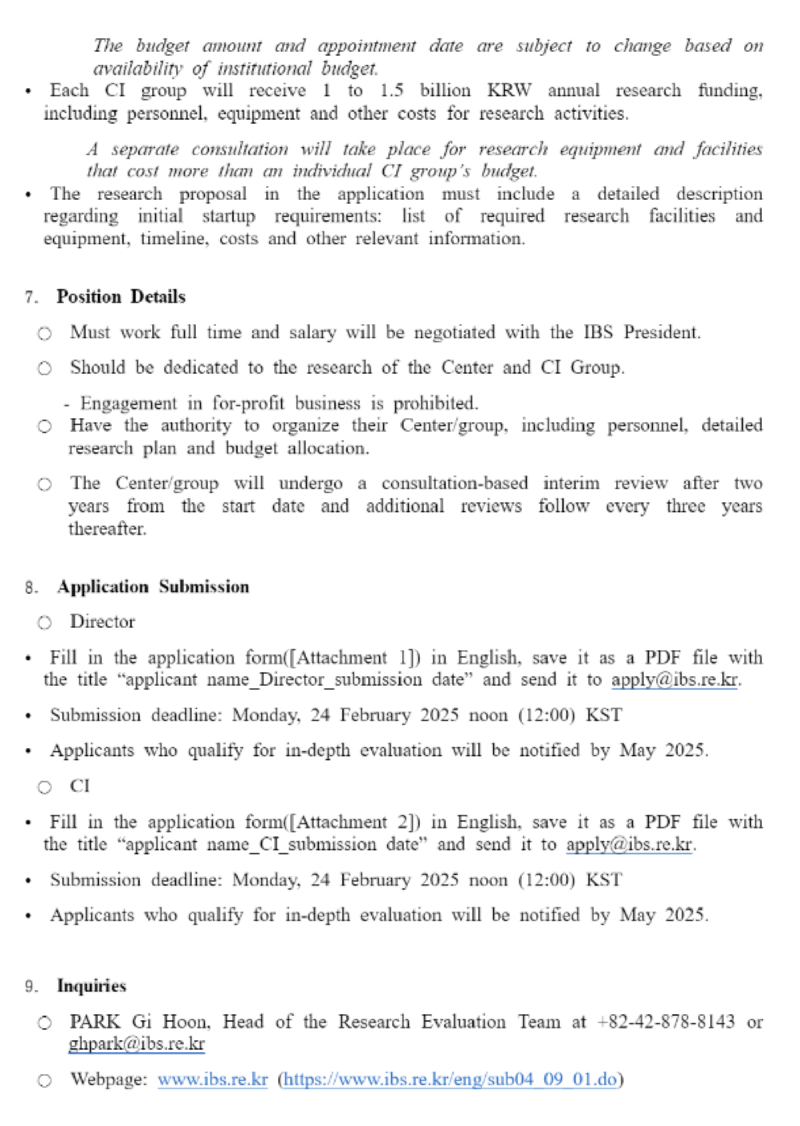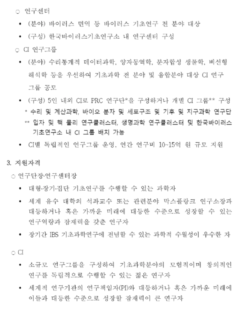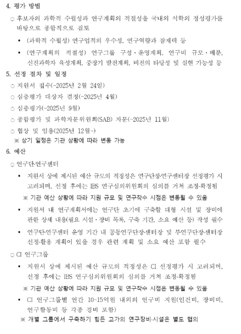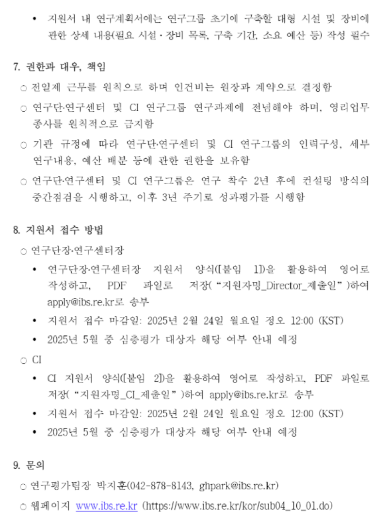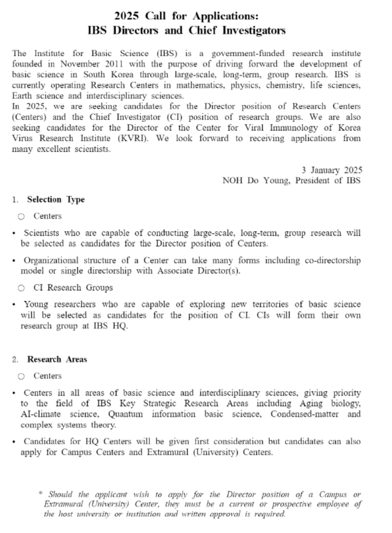 2025년 기초과학연구원(IBS) 연구단장·연구센터장·CI 모집 안내
