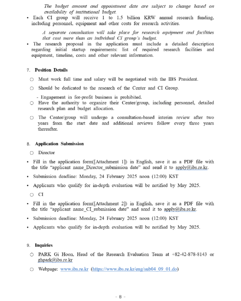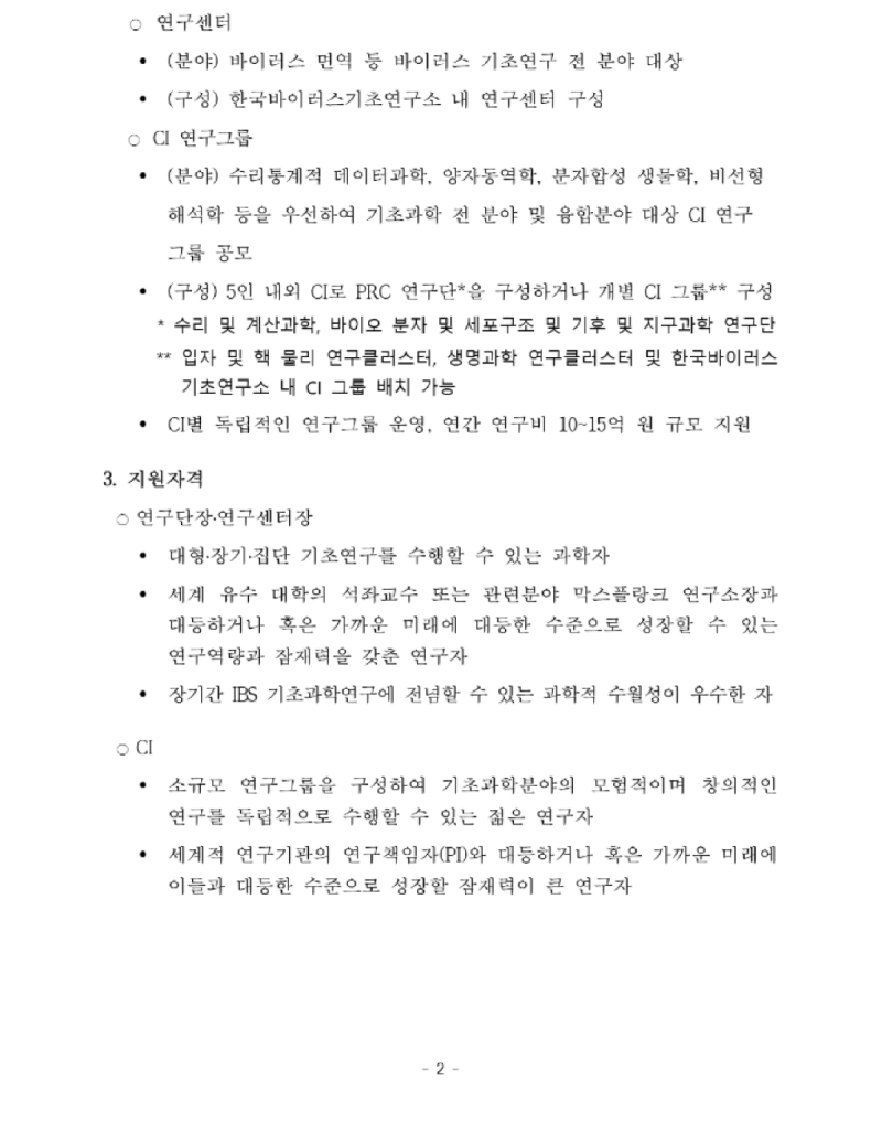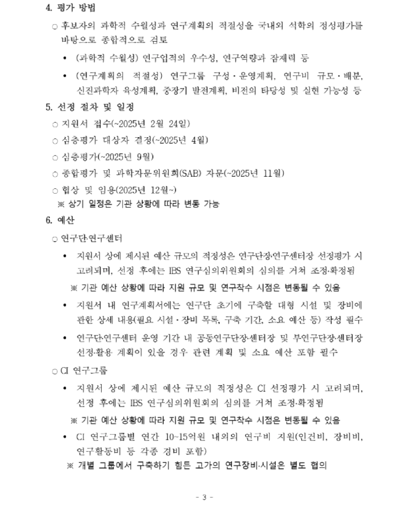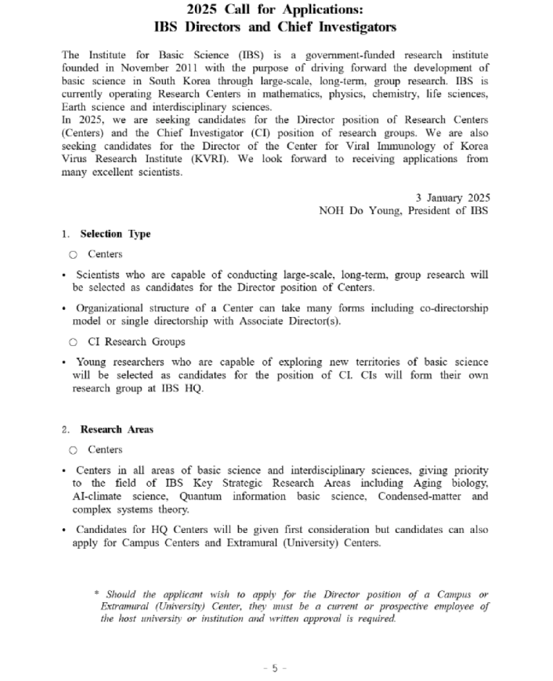기초과학연구원 2025 연구단장·연구센터장·CI 모집