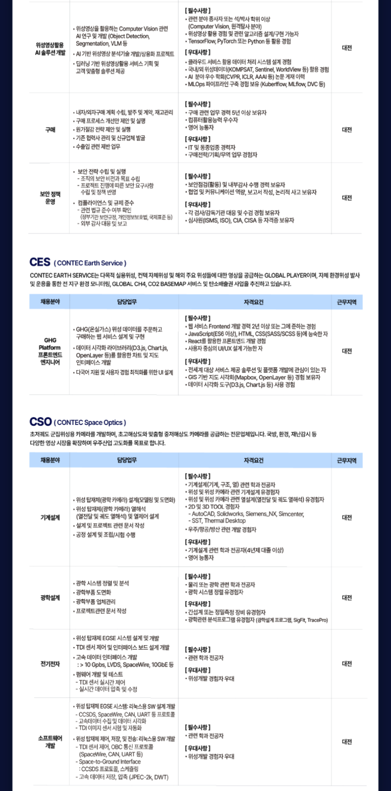 컨텍 스페이스 그룹 2025년 각 부문 직원 채용