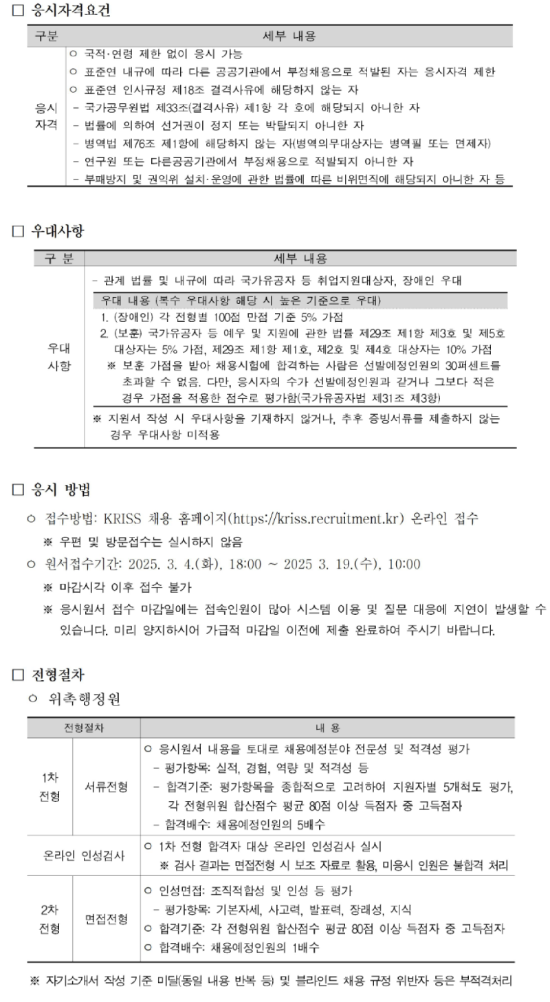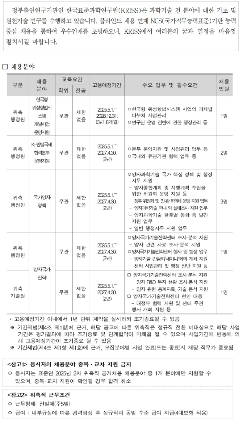 한국표준과학연구원 2025년 2차 위촉직 채용