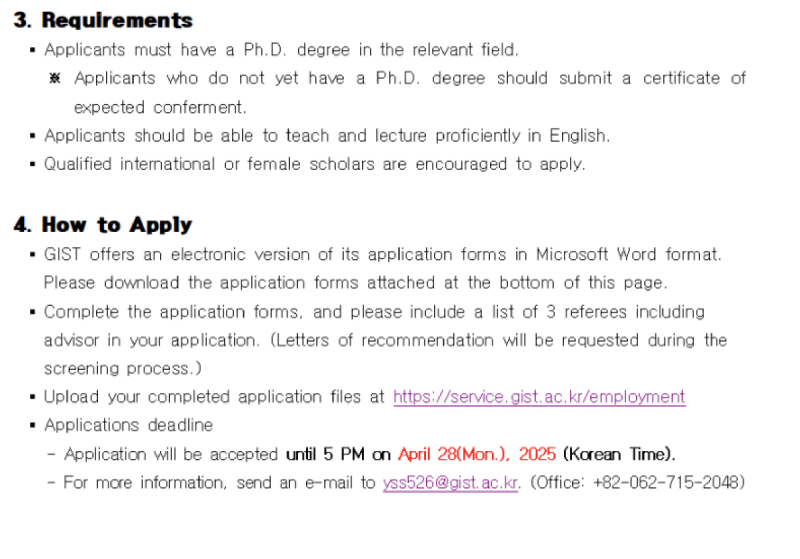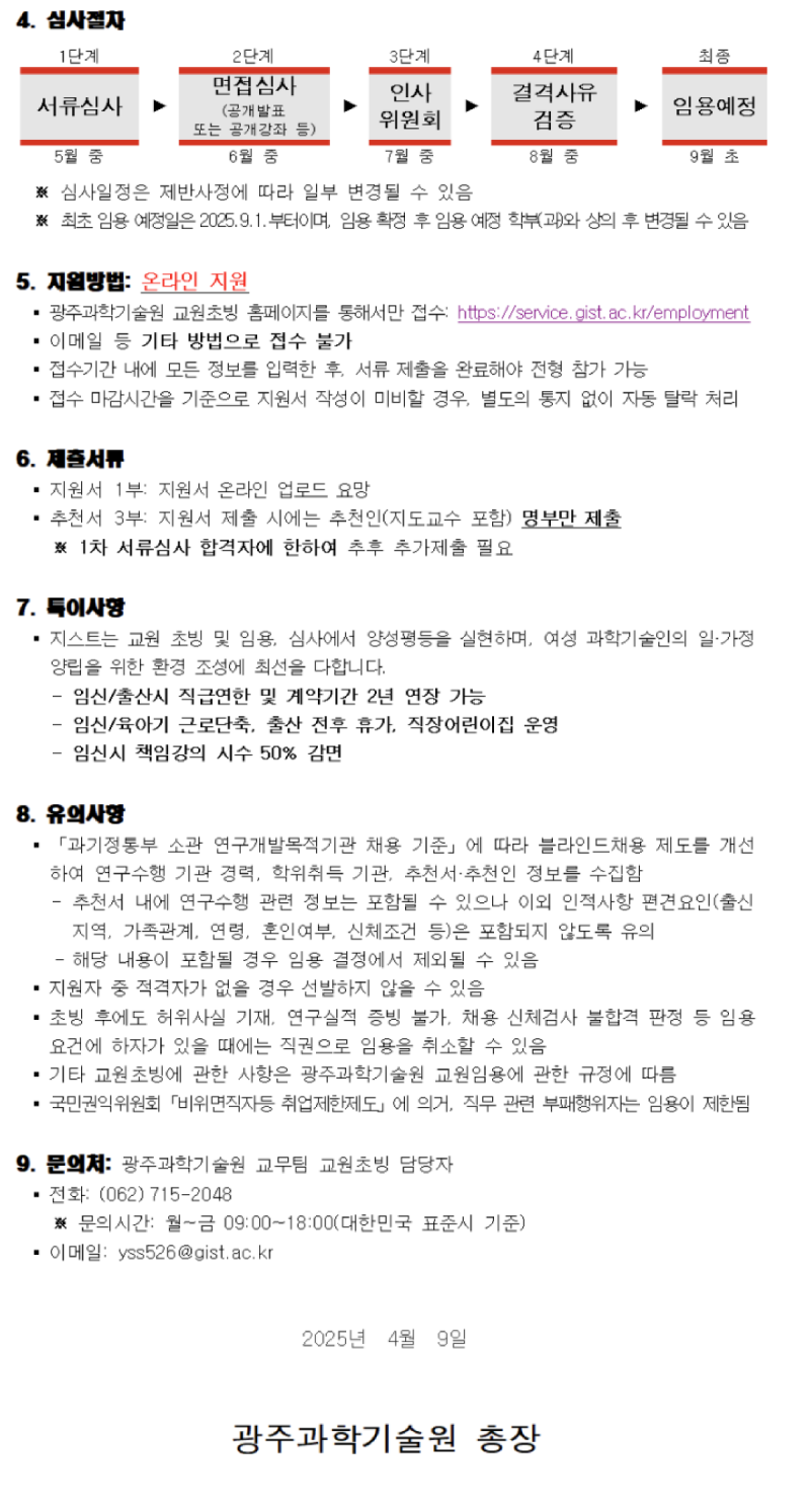 광주과학기술원(GIST) 2025년도 제1차 전임교원 초빙