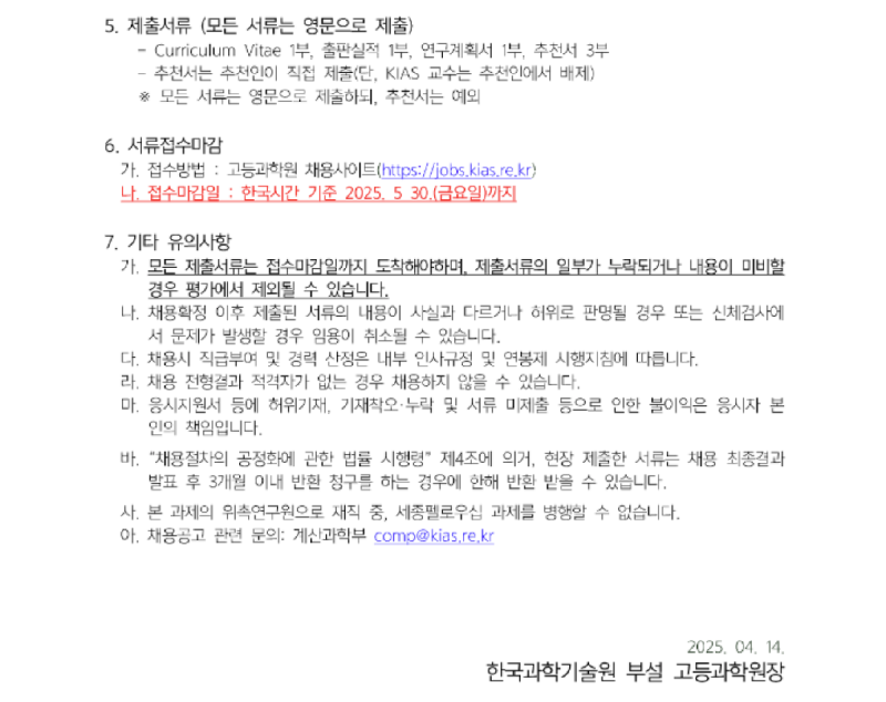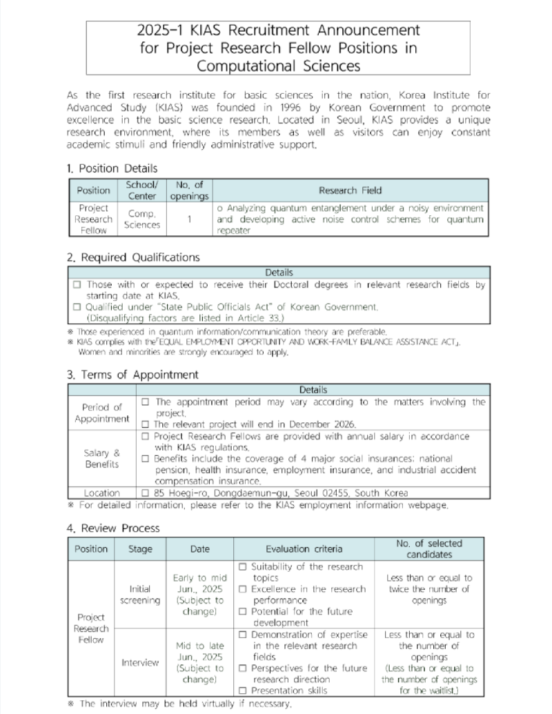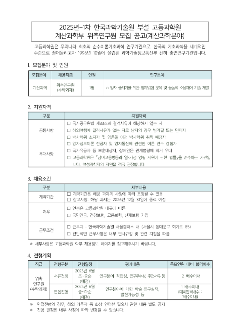 고등과학원 계산과학부 위촉연구원 모집(1차)