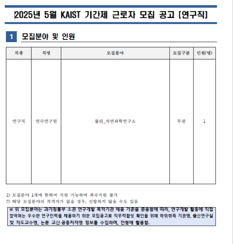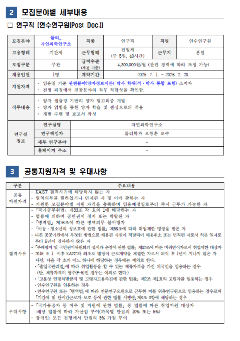 KAIST 자연과학연구소_물리학과 PostDoc 모집