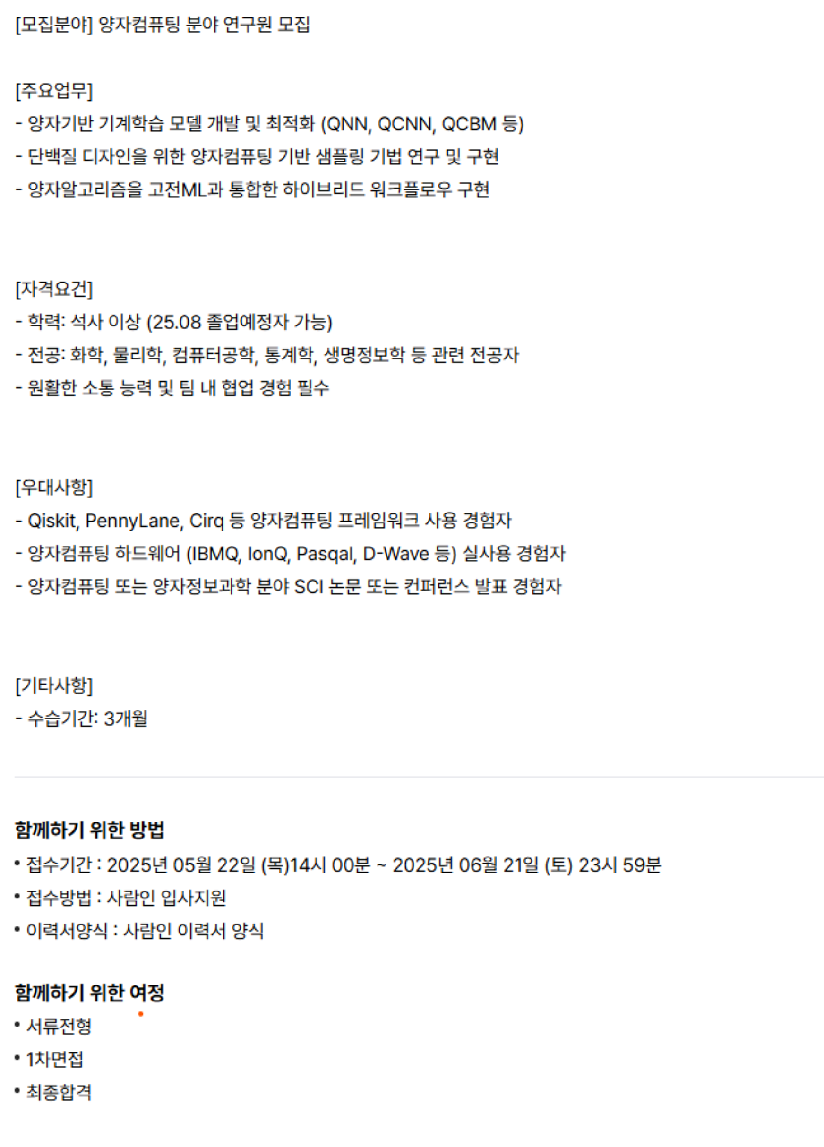 분자설계연구소 양자컴퓨팅 연구원 채용