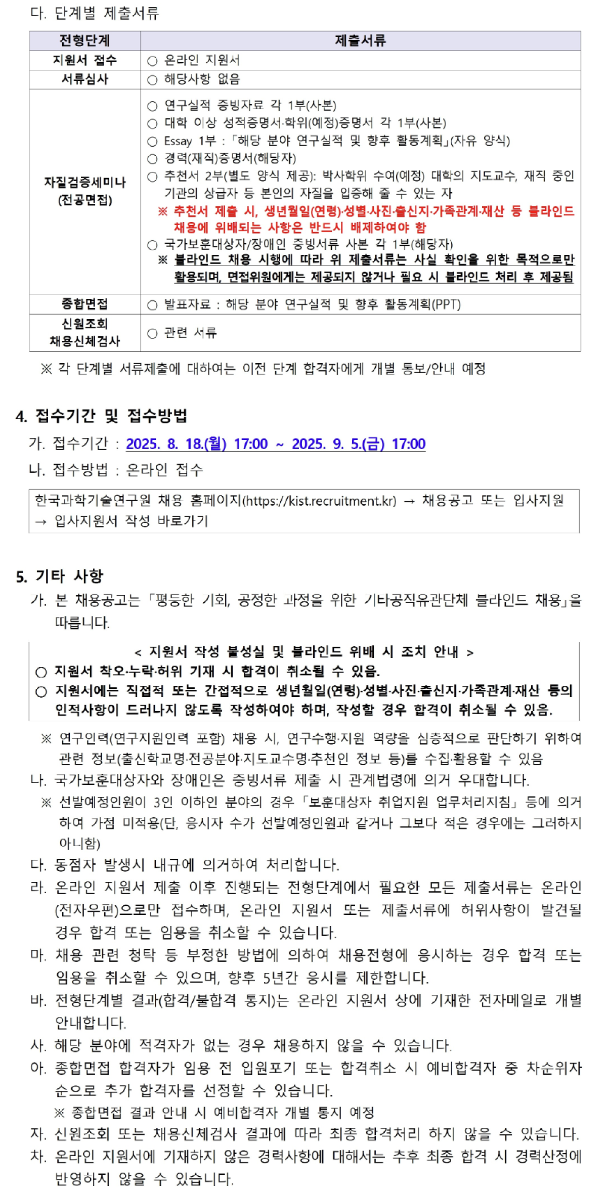 2025년도 KIST 제3차 연구부문 공개채용