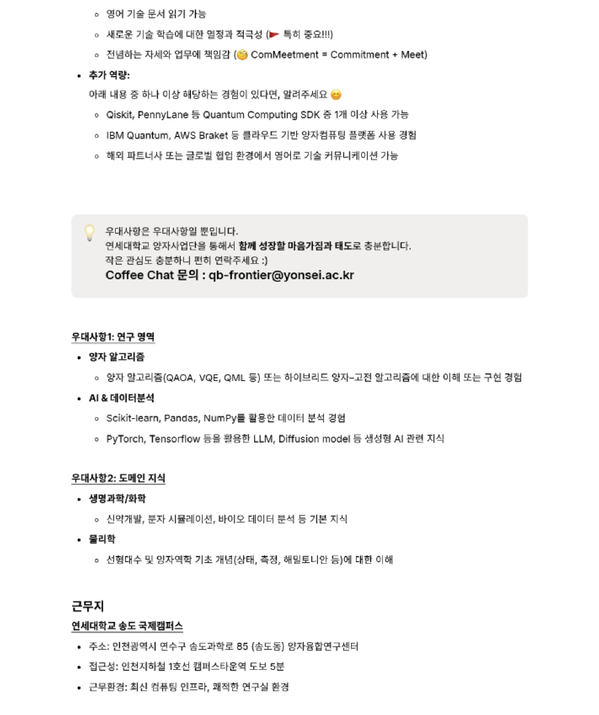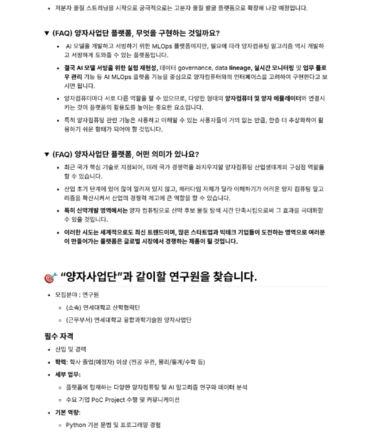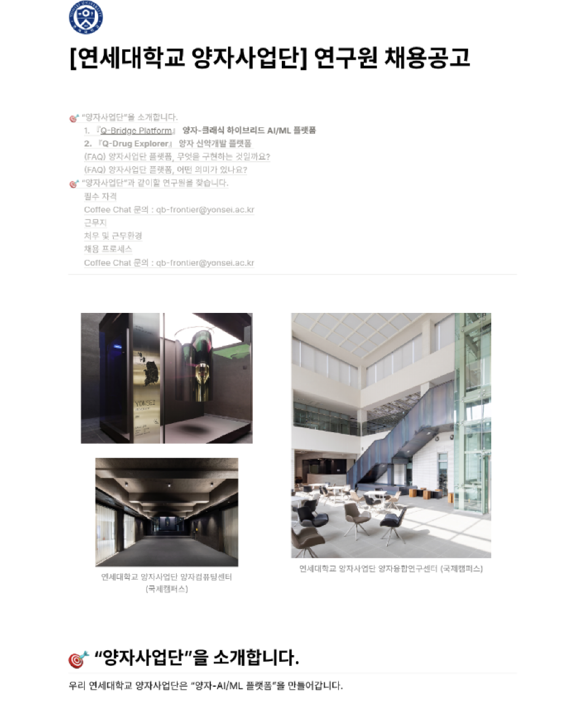 연세대학교 양자사업단 연구원 모집