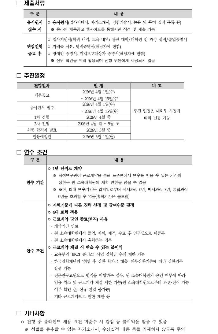 2026년 2차 근로연구학생 공개채용