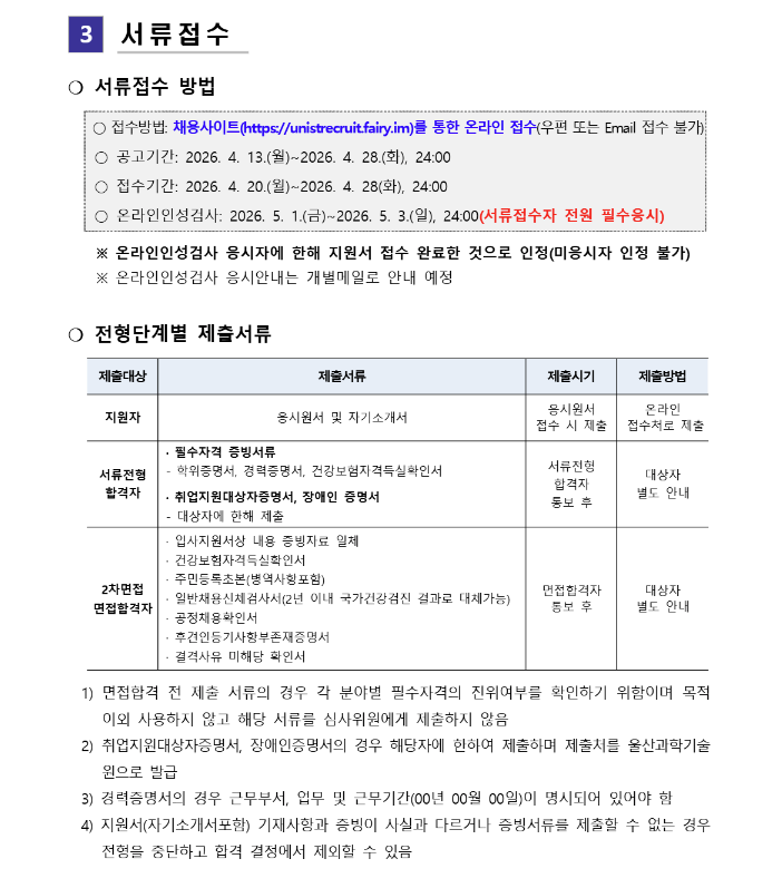 2026년 울산과학기술원 제1차 직원 채용