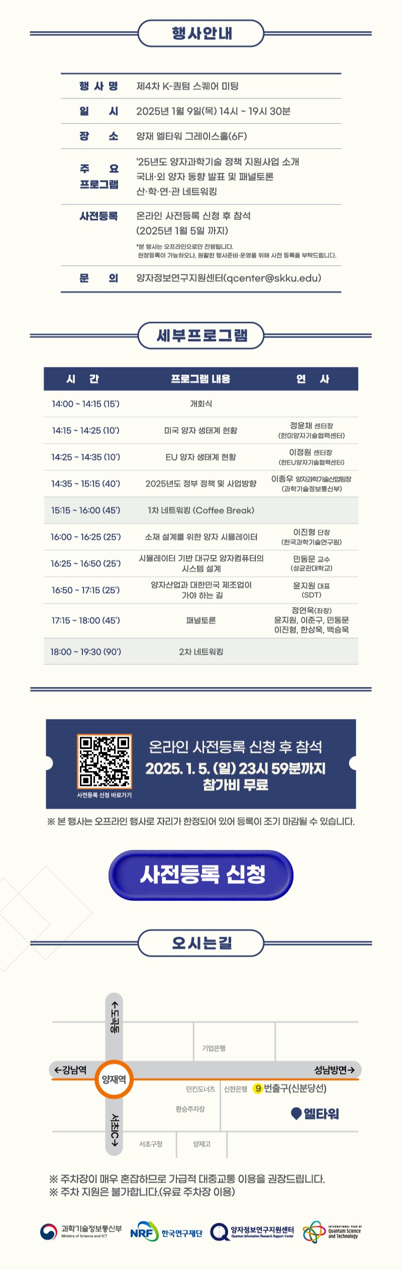 과학기술정보통신부 주최, 한국연구재단 & 양자정보연구지원센터 주관으로 2025년 1월 9일에 양재 엘타워에서 개최된